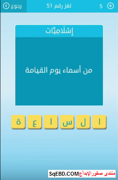 حل سؤال من اسماء يوم القيامة من اللغز رقم 51 من لعبة رشفة للمجموعة السادسة صقور الإبدآع
